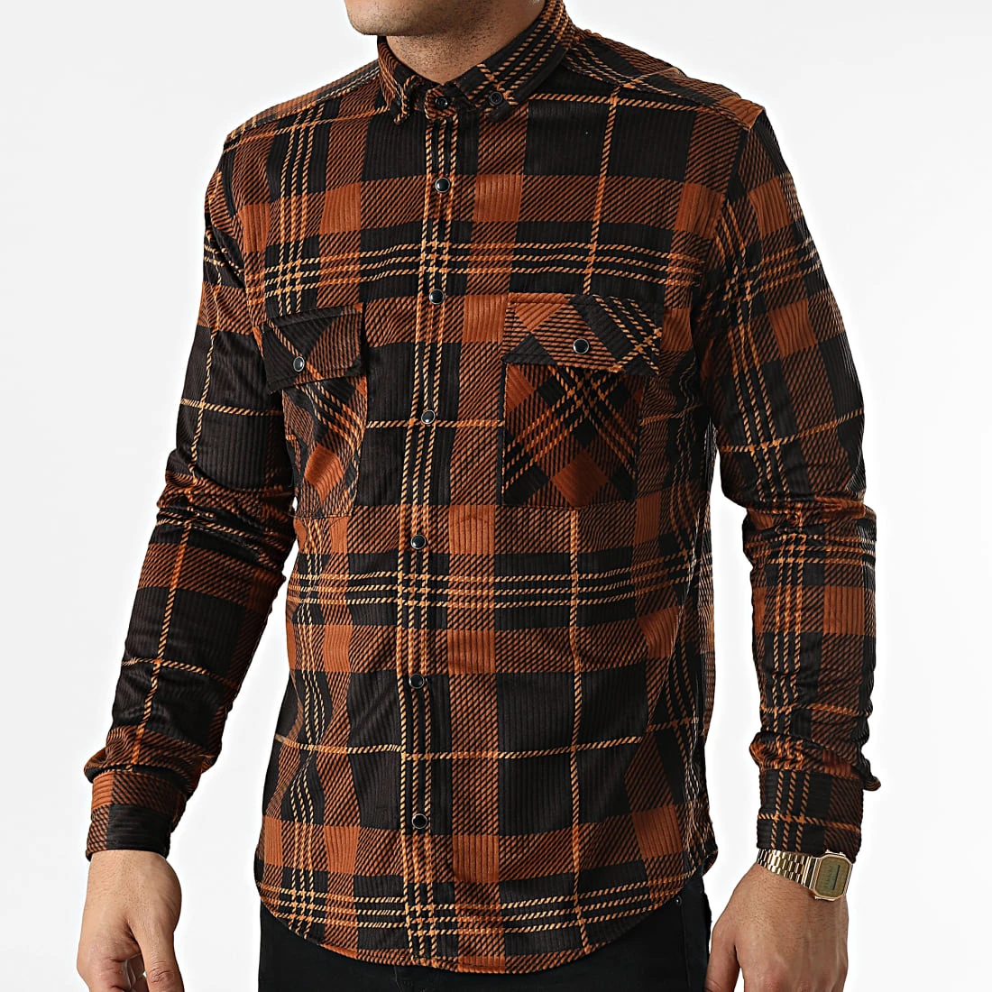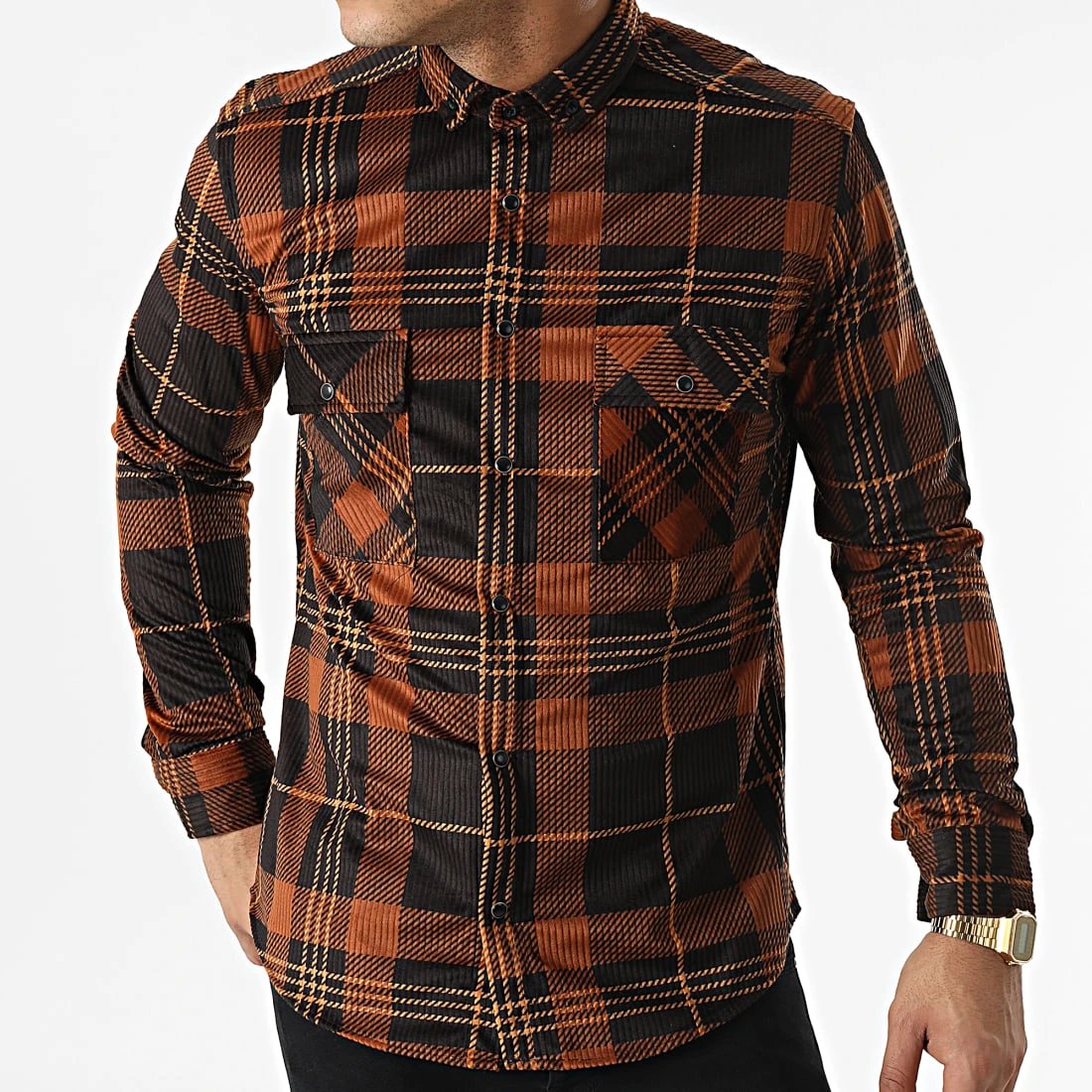 • Chemise manches longues en tissu doux avec motif carreaux