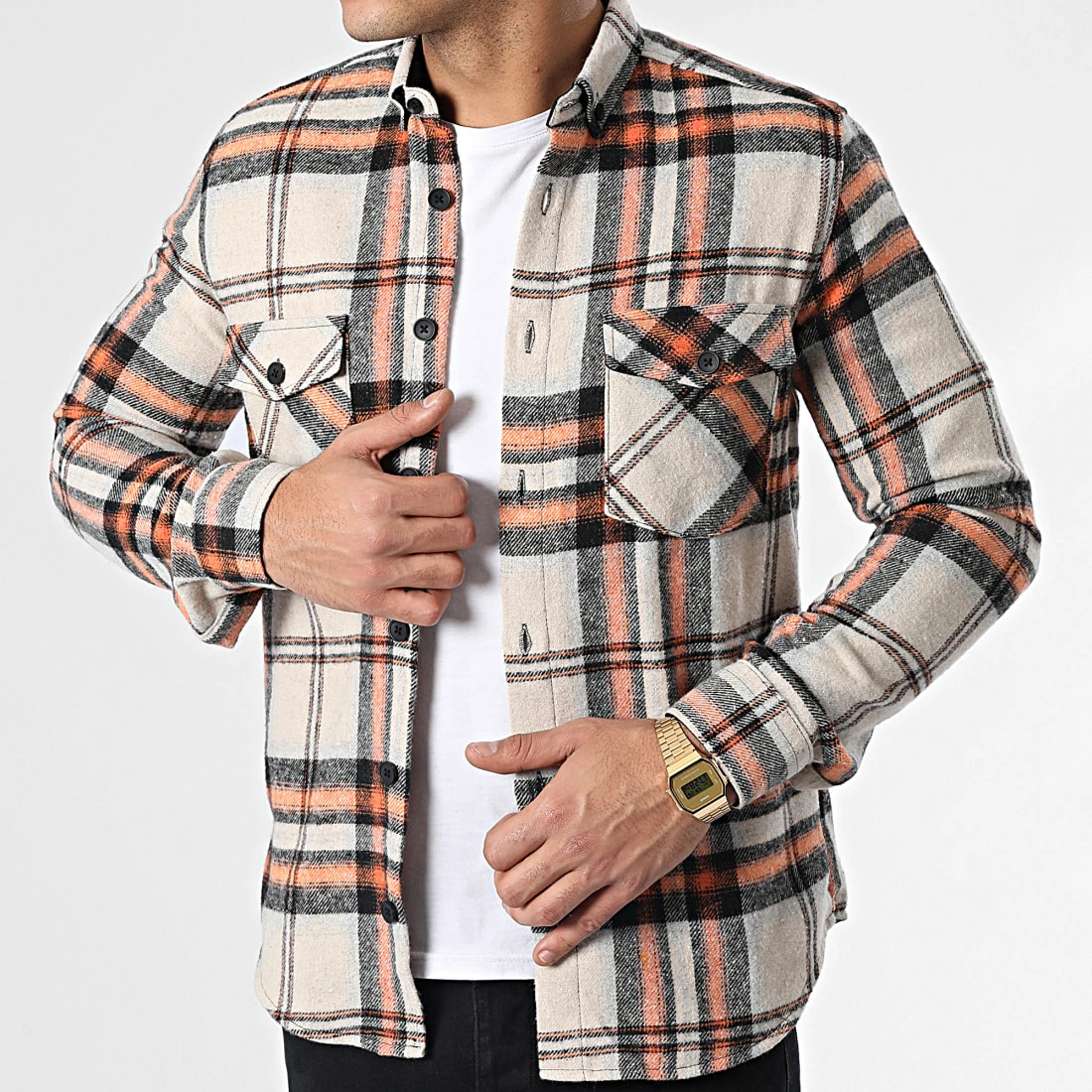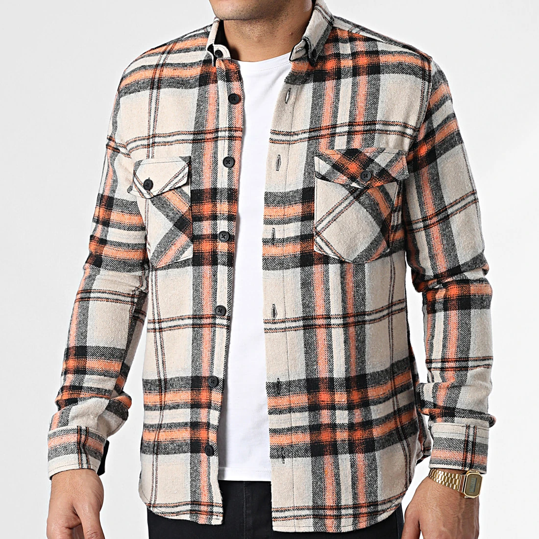 Surchemise Carreaux Y3688 Beige de Black Needle
