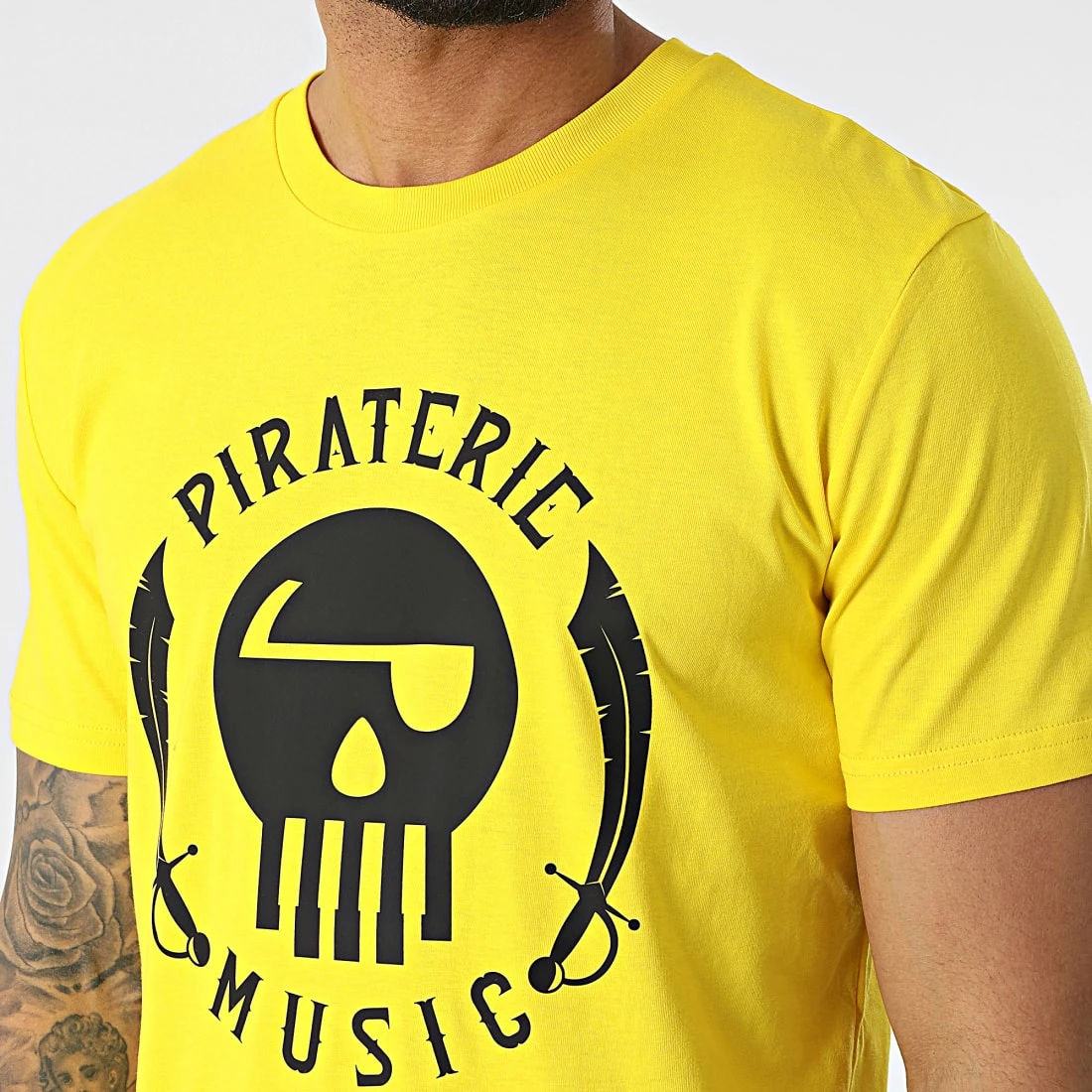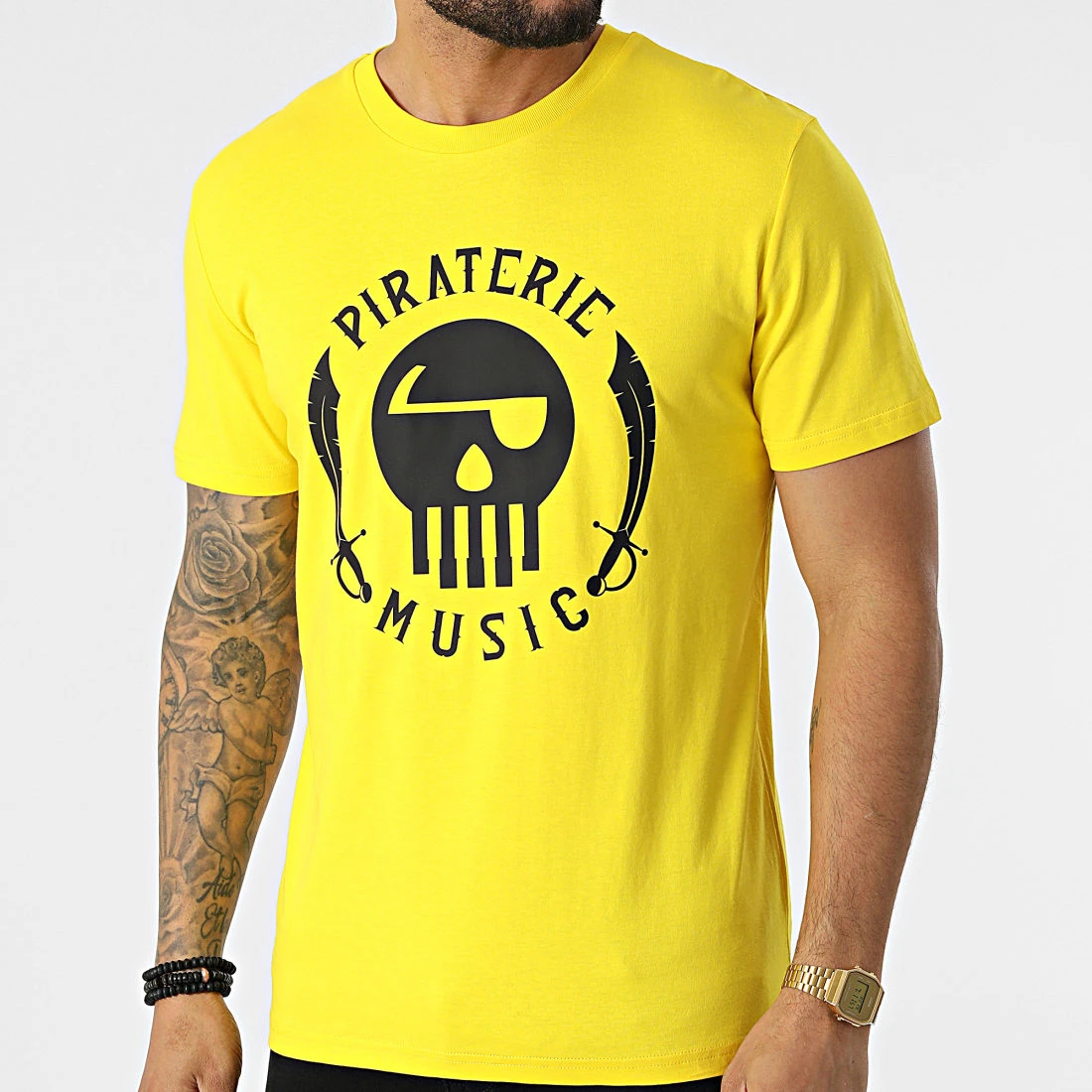 Tee Shirt Logo Jaune Noir de Piraterie Music