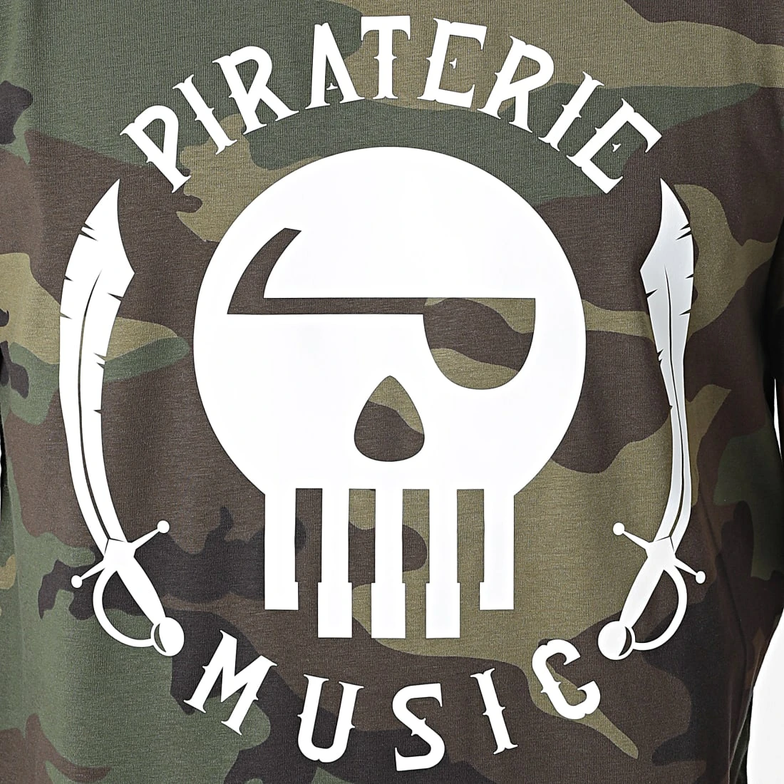 Tee Shirt Piraterie Music Camouflage Vert Kaki Blanc