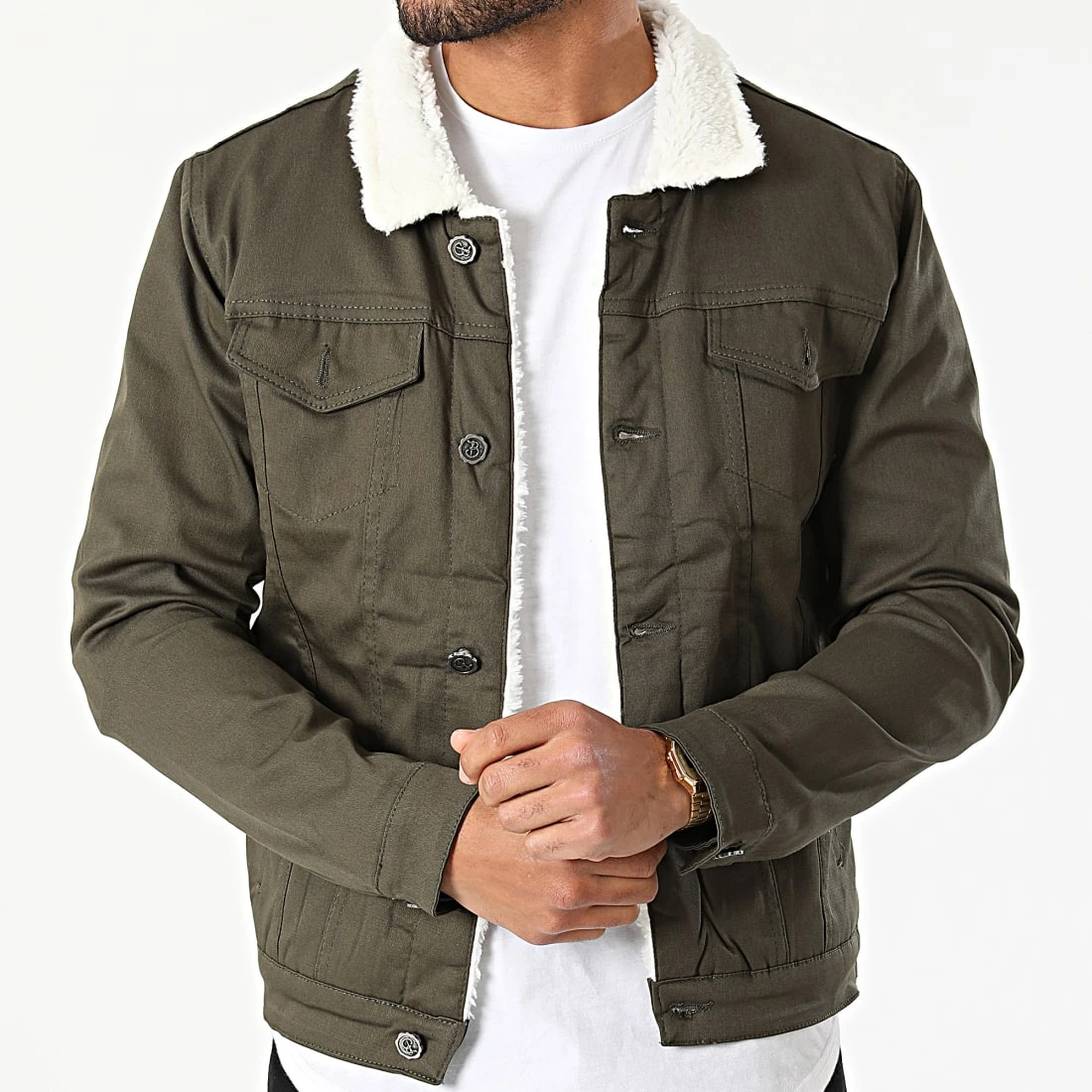 Veste Jean Col Mouton 7004 Vert Kaki de Black Needle