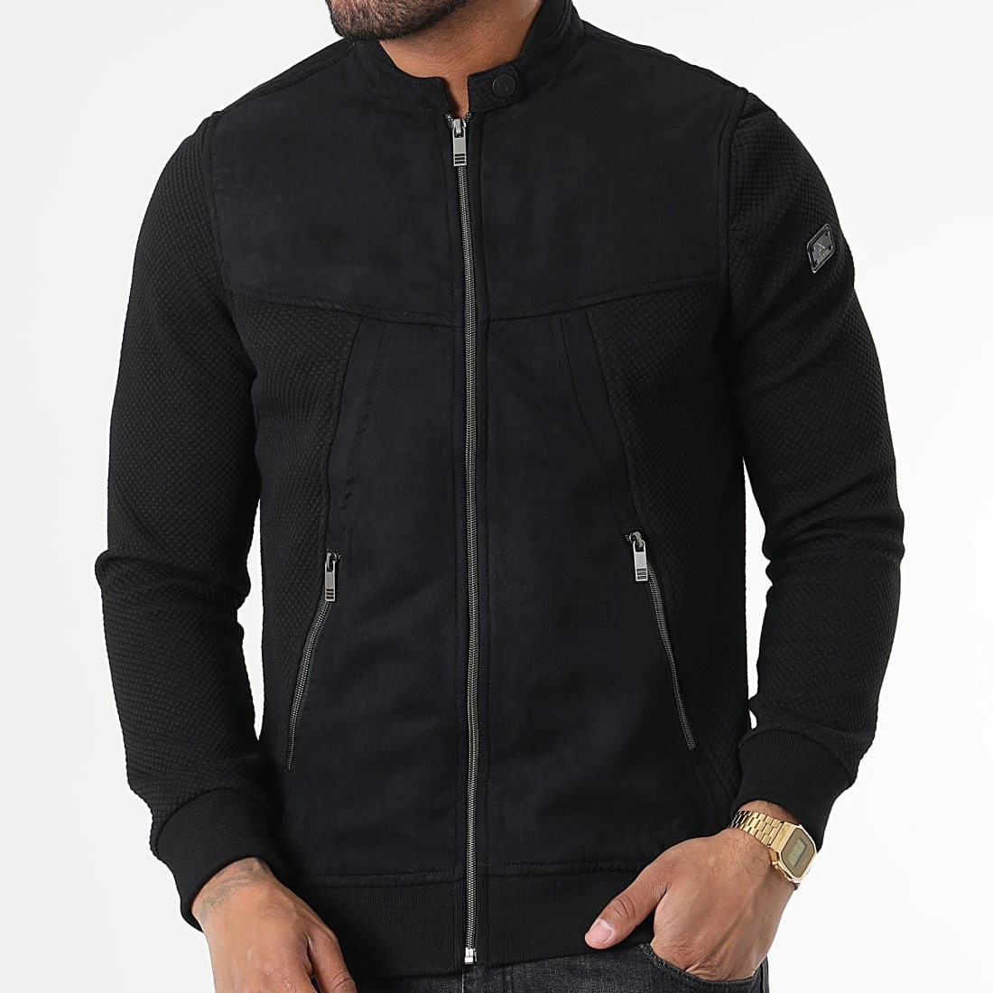 • Veste zippĂ©e bi-matière tendance avec patch Black Needle brodĂ© Ă l’Ă©paule