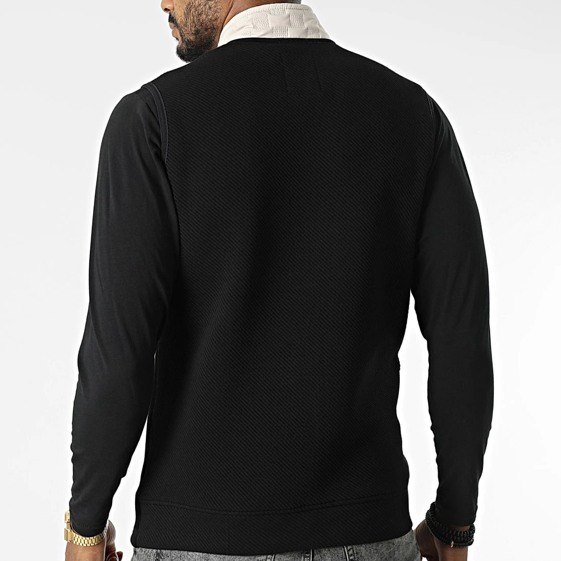 • Veste zippée sans manches bicolore tendance avec patch Black Needle brodé