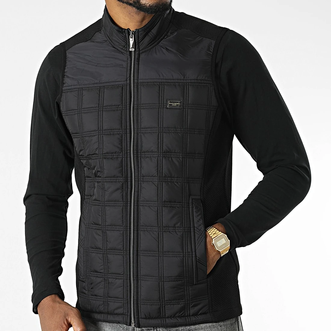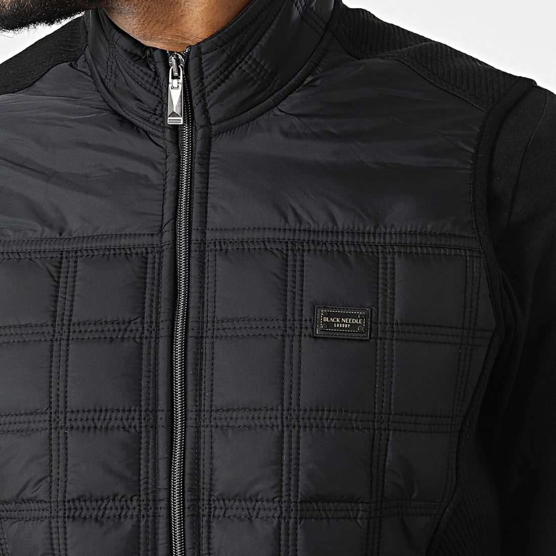 • Veste zippée sans manches bi-matière tendance avec patch Black Needle brodé